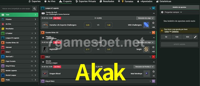 A aposta Akak oferece aos jogadores a experiência mais conveniente de apostas em eSports!